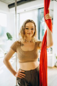 W 2021 roku zrobiłam kurs na instruktora Aerial Hoop z FlyingRose. I od tamtej pory uczę latać.